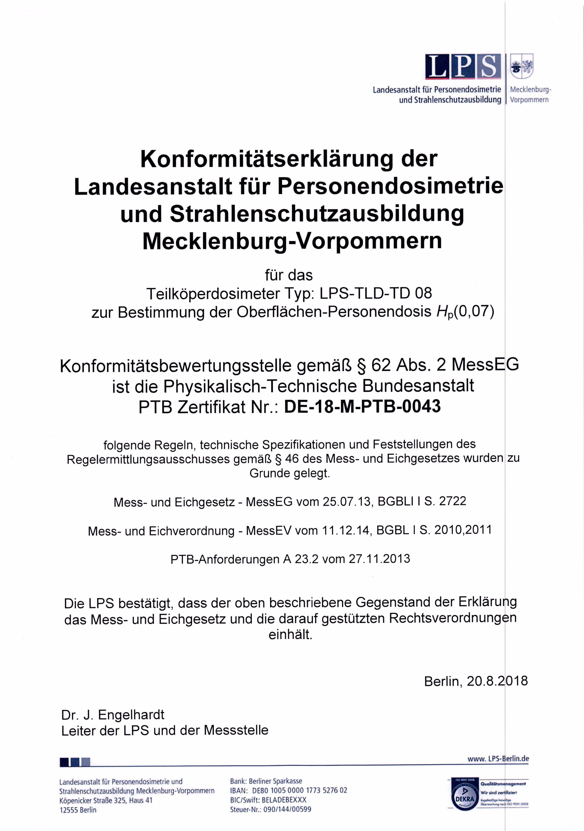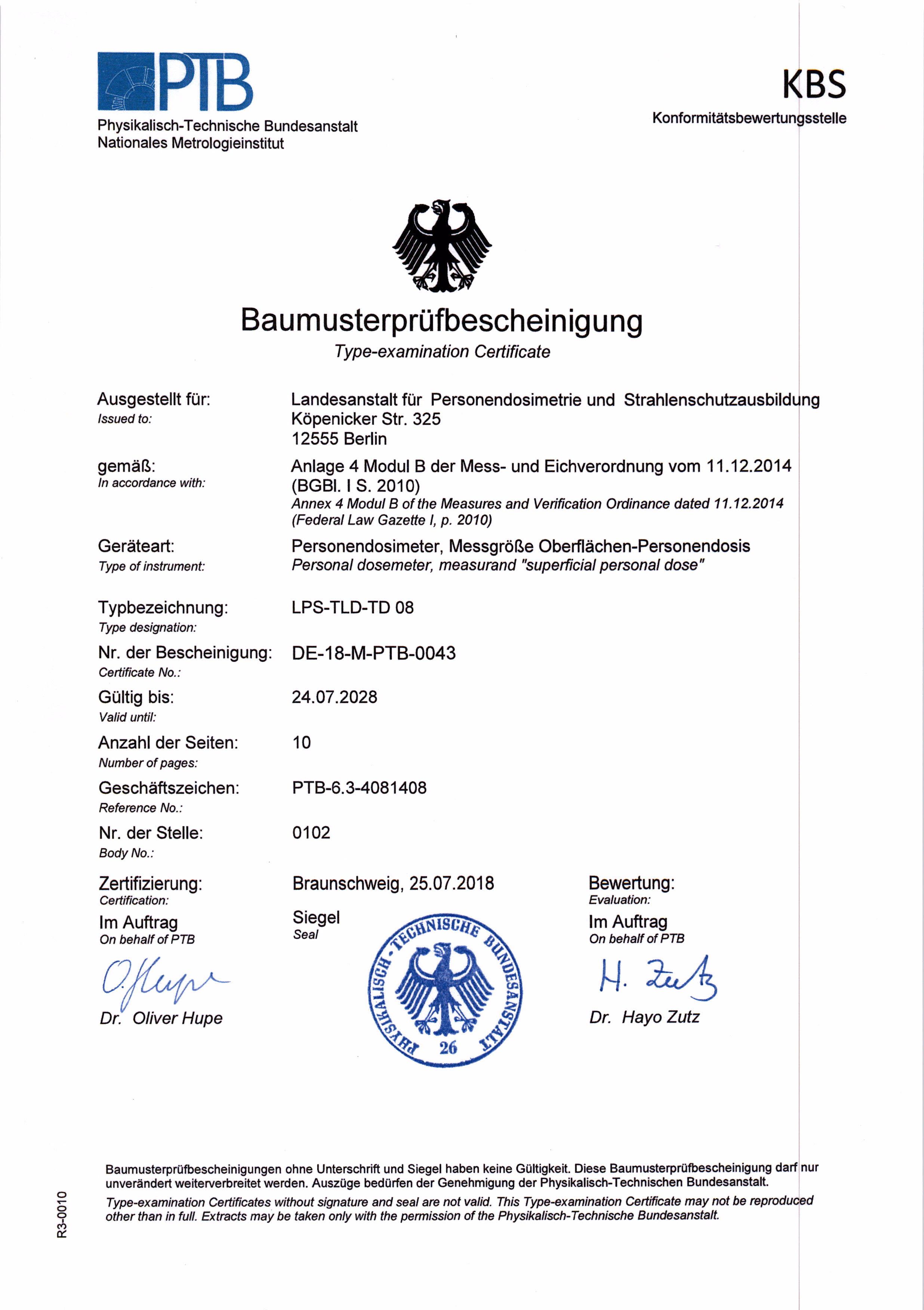 Aufgrund des seit 01.01.2015 geänderten Mess- und Eichgesetzes bzw. der Mess- und Eichverordnung laufen alle Bauartzulassungen zum 31.12.2024 aus und die Messstelle muss für ihre Dosimetriesysteme die Zulassungen erneuern.